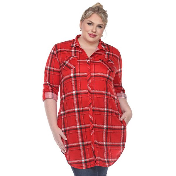 Plus Size White Mark Plaid Button Down Tunic Shirt